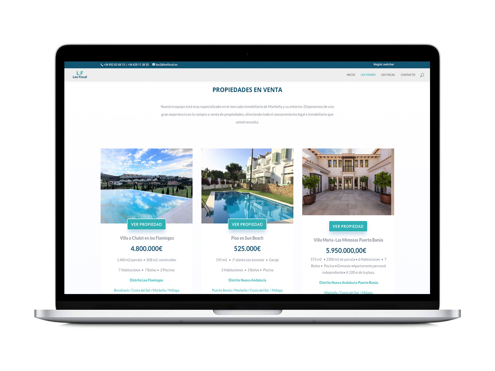 Diseño de página web para la Asesoría Fiscal y Agencia Inmobiliaria en Marbella, Estepona y entorno.