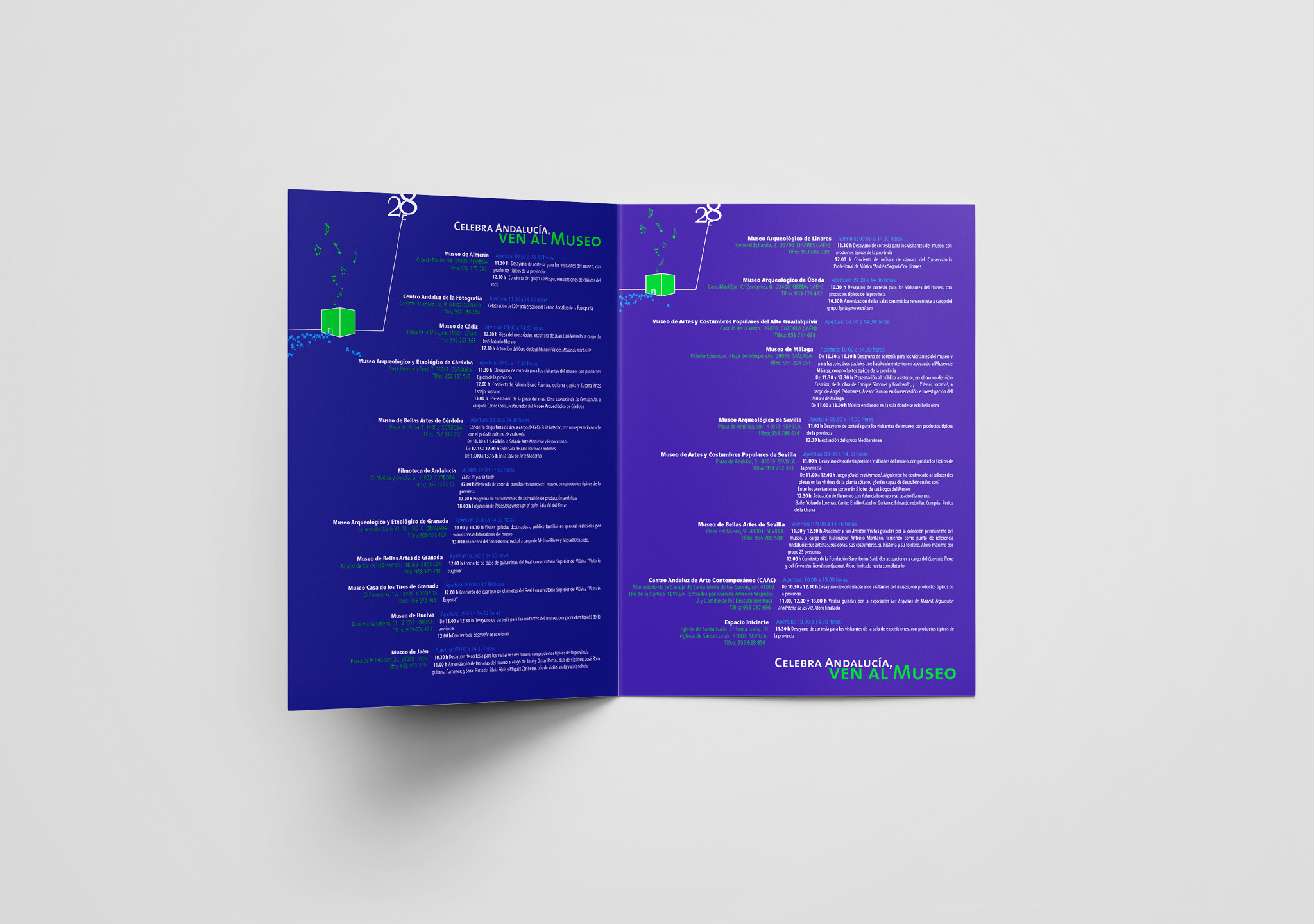 Campaña publicitaria para el Día Andalucía «Celebra Andalucía, ven al Museo» en los museos de la ciudad de Sevilla: Bellas Artes, Arqueológico y Centro Andaluz de Arte Contemporáneo (CAAC). Material Gáfico, Publicidad impresa y en Web