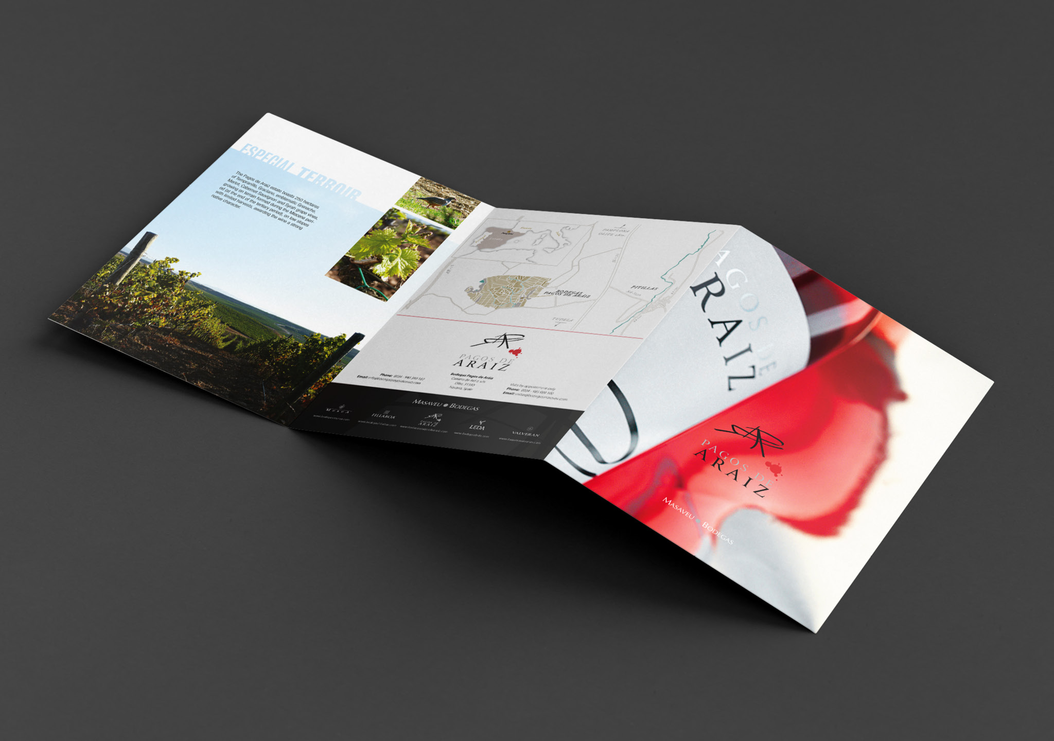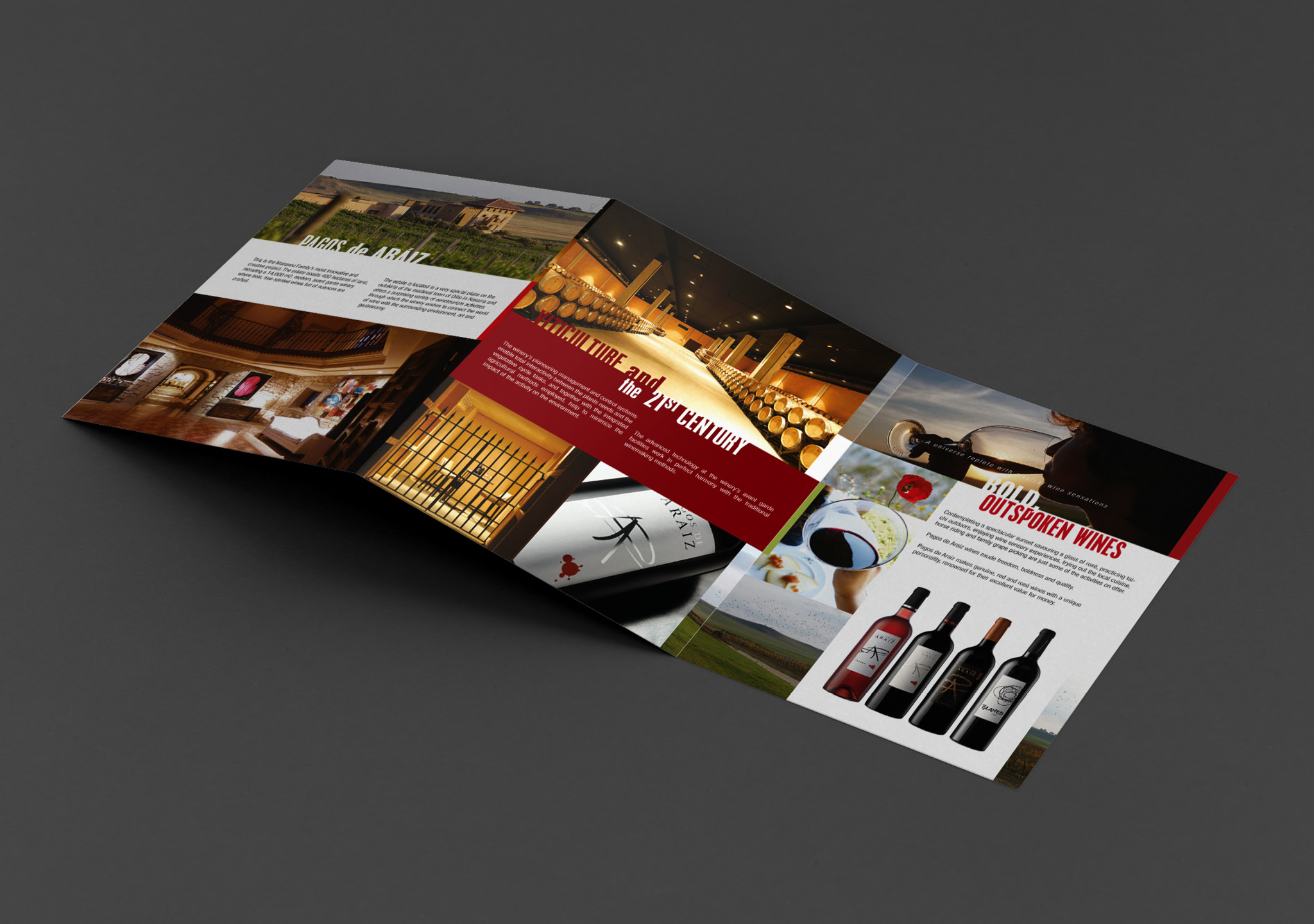 Material de marketing (Trípticos, fichas de vinos, tarifas) para Bodegas Pagos De Aráiz.